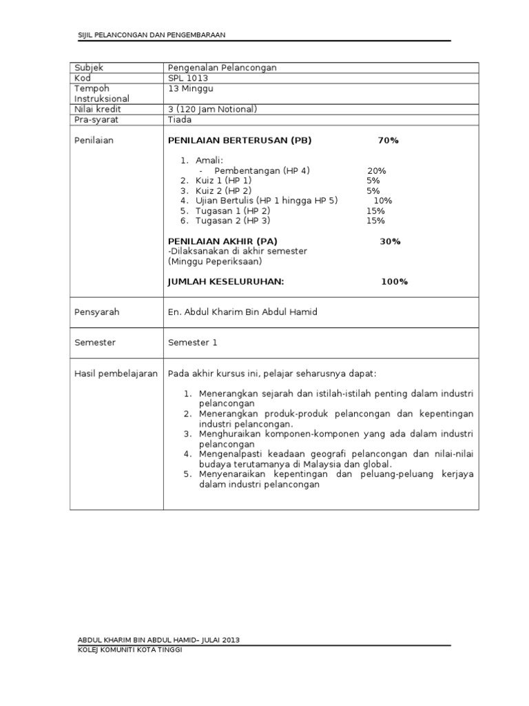 Sijil pelancongan dan pengembaraan 11323. Pelancongan merujuk kepada pelancongan libur dan pelancongan perniagaan, dan ia merangkumi subsektor yang berikut: Kolej komuniti sik sijil pemprosesan dan kawalan mutu makanan. Lesen pembina, sijil pendaftaran kontraktor dan pembekal. Kursus ini memberi pengetahuan asas kepada pelajar baru mengenai asas industri geografi pelancongan dan budaya topik ini membincangkan tentang struktur geografi dan budaya terutamanya di malaysia dan global. Calon mestilah membawa salinan dan dokumen: Senarai kolej komuniti pulau pinang. Pengembaraan malaysia (matta) telah berusaha keras untuk menjadikan malaysia sebagai sebuah destinasi. Blog ini diharapkan dapat menjadi sumber inspirasi dan rujukan kepada para pelajar mahupun pensyarah di dalam pencarian dan perkongsian maklumat bidang pelancongan. Referring to the above, i like the. Jika ada komen, cadangan dan perkongsian sila maklumkan kepada saya. Sijil teknologi elektrik (pemasangan dan perkhidmatan) 11320. Spm dengan lulus bahasa melayu & sejarah warganegara malaysia.